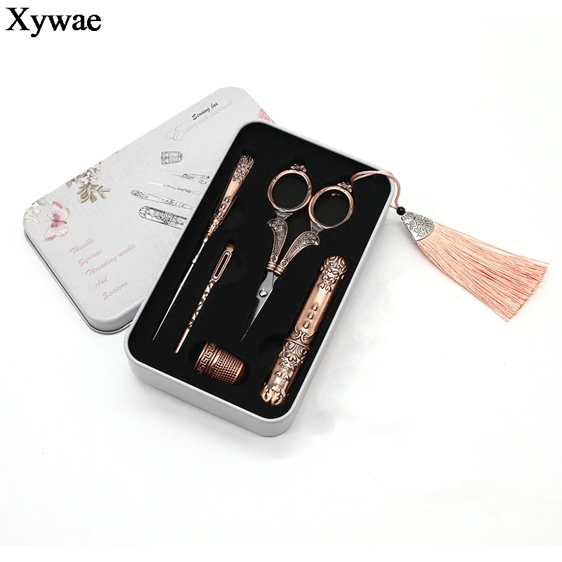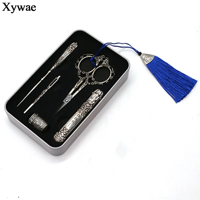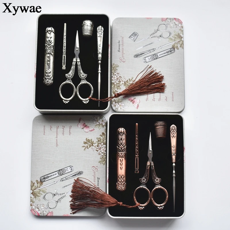 Металлическая коробка ретро Винтаж ножницы игла чехол шило нити наперсток Вышивка крестом Вышивка Шитье ножницы пошив по индивидуальному заказу для прошивки зигзагом