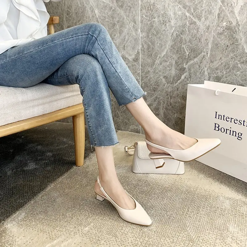 Туфли женские без задника, заостренный носок, сланцы, низкий каблук...