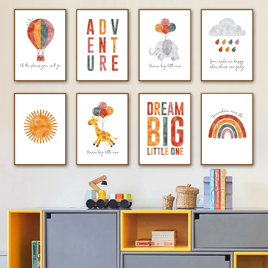 Слон жираф кролика, енота лиса детская стена искусство холст картин...