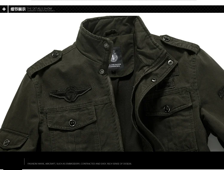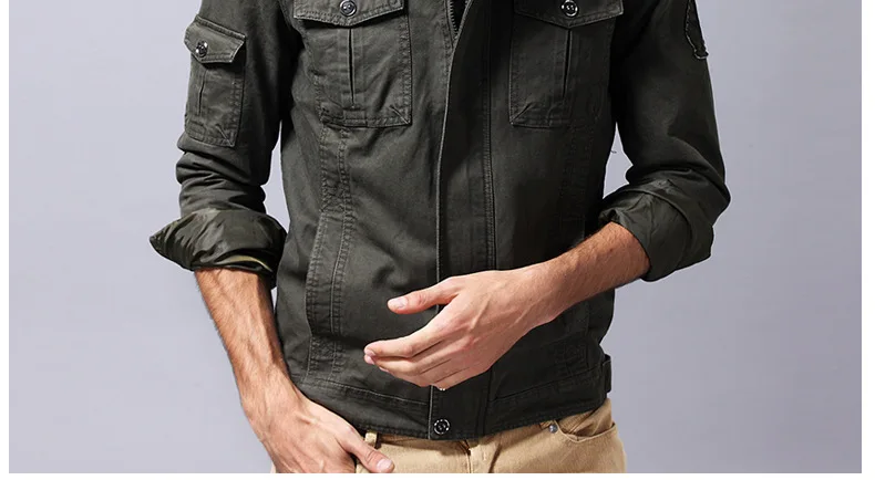 Мужская тертые хлопковые куртка в стиле милитари Стиль повседневная...