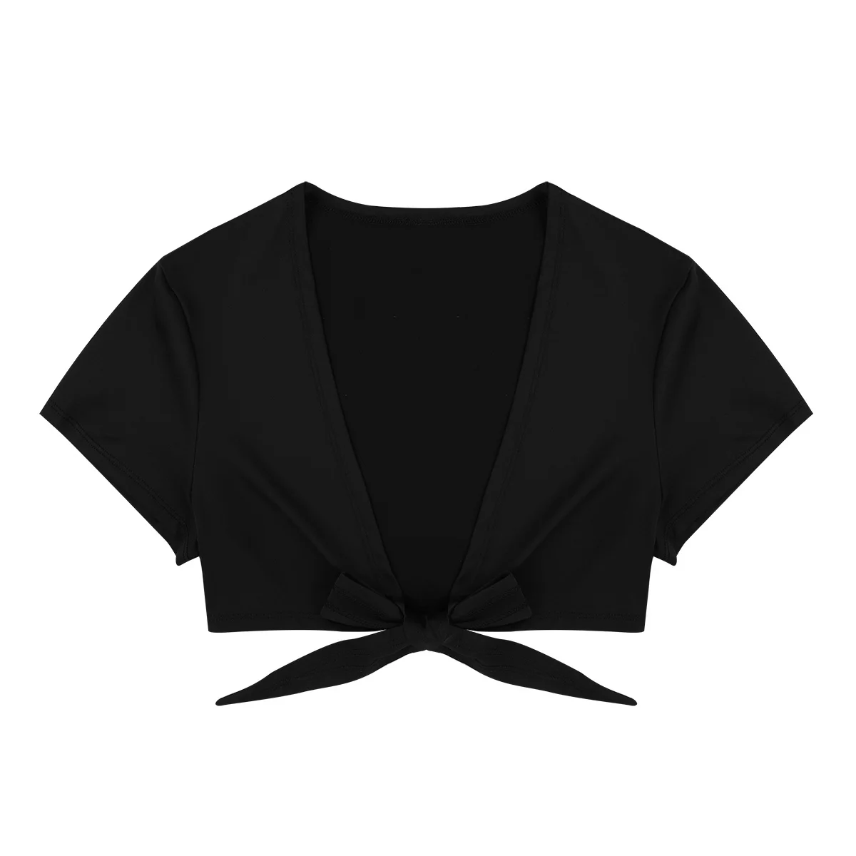 Женская короткая мини-футболка, Летняя короткая футболка с глубоким V-образным вырезом и завязкой спереди, болеро, кардиган, короткий топ, рубашка
