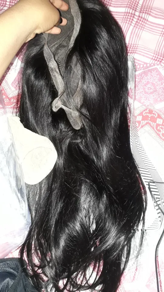 Это мягкие женские волосы, размер 32 дюйма, и я не жалуюсь! Кружева такие хорошие люди даже не заметят, что это парик hihii .. Плюс сообщение от продавца, я определенно буду покупать больше в будущем!