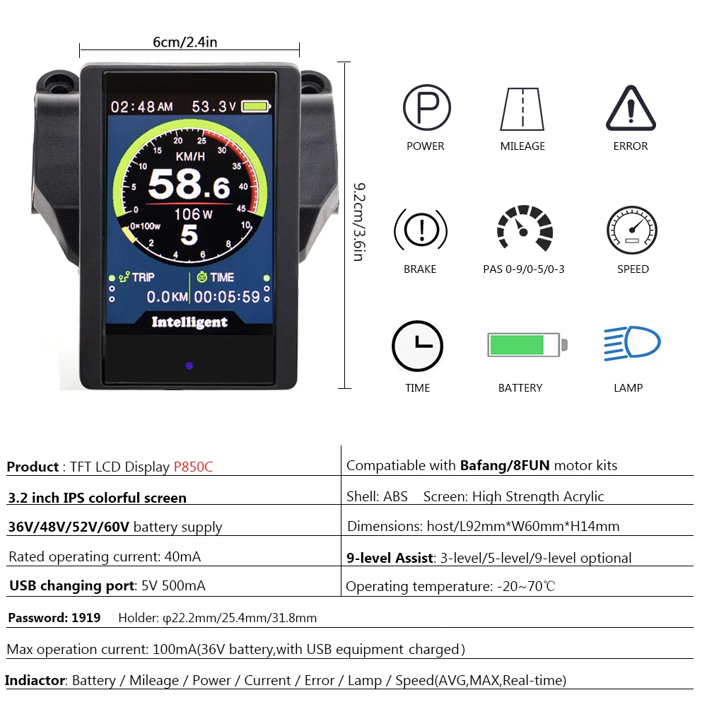 Bafang для е-байка HDMI Дисплей индикатор для 8FUN до середины концентратор ручной Электрический миксер для теста велосипедные комплекты для конверсии P850C 850C DPC18 C965 750C
