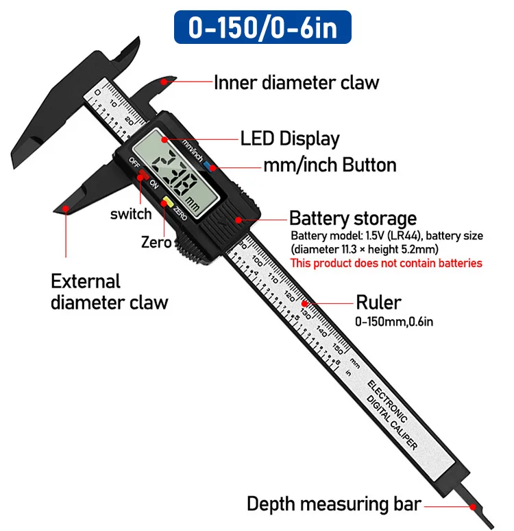 Измерительный Инструмент 0-150 мм Цифровой штангенциркуль 6 дюймов ЖК-дисплей из углеродного волокна с высотомер микрометр измерительные приборы карты линейки