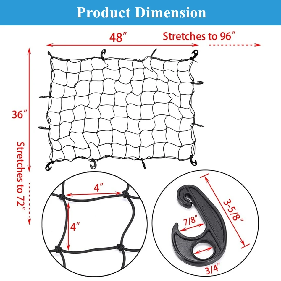 Сверхпрочная сетка для груза BENOO 3 'x 4', сетчатая сетка для багажника на крышу, внутренний потолочный груз для грузовика, кровати и внедорожника, для путешествий на крыше