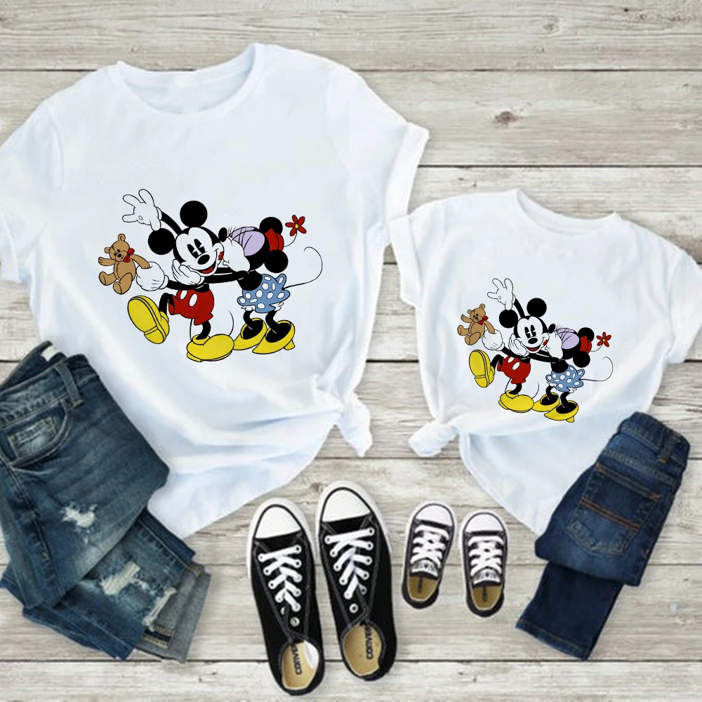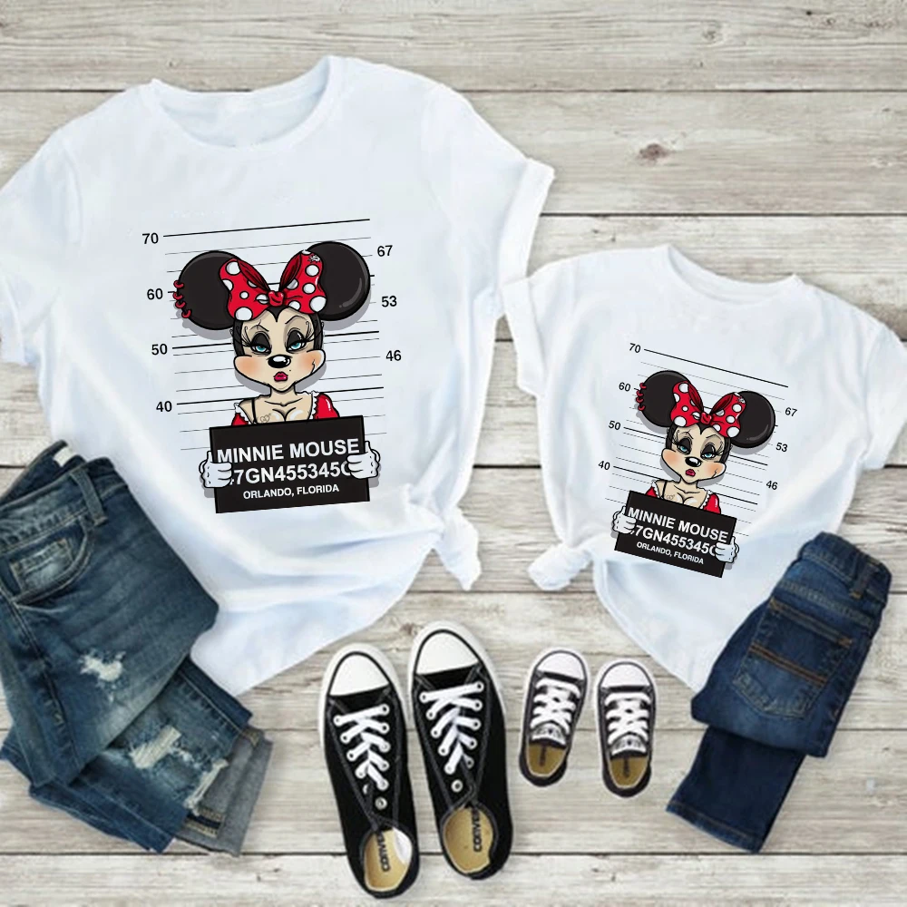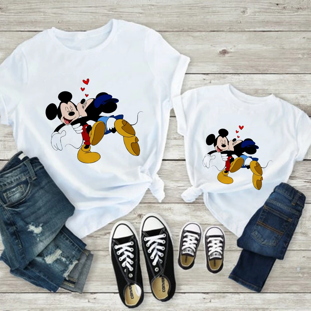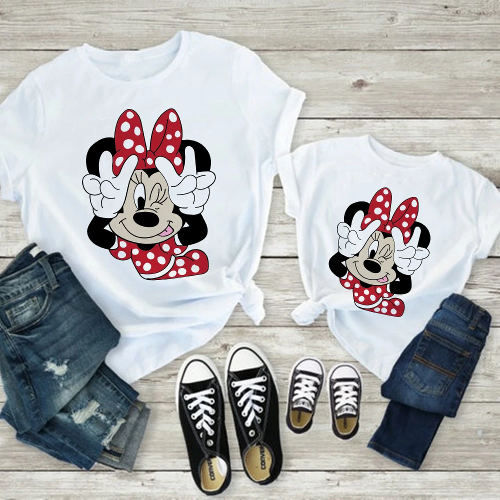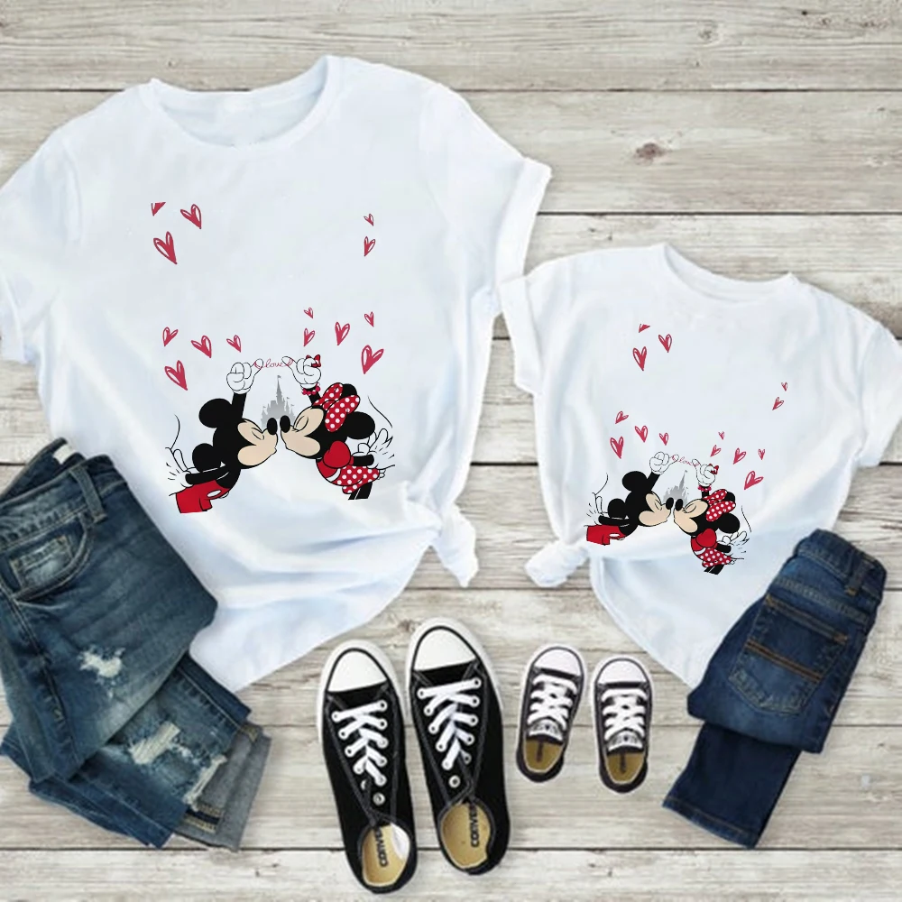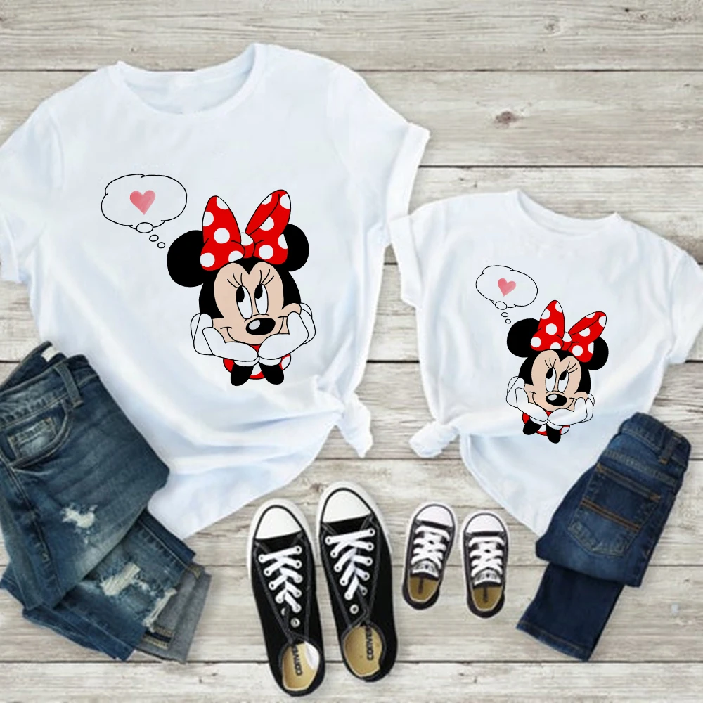Женская футболка с принтом Минни Маус, Повседневная Базовая белая детская футболка, Мужская футболка с короткими рукавами, принт с надписью Love, Famliy Look