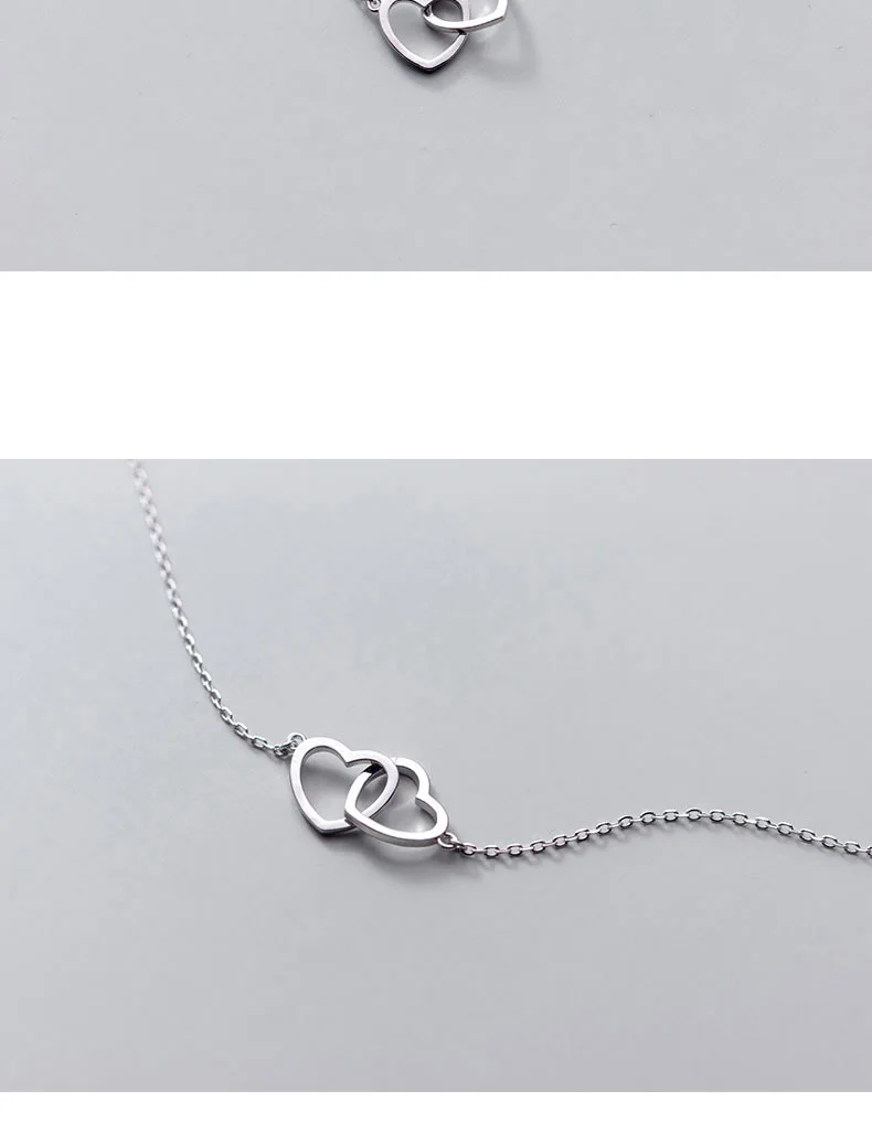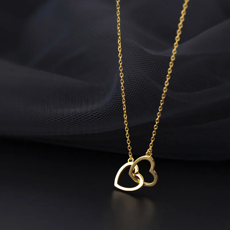 TrustDavis Настоящее серебро 925 пробы, модное романтическое ожерелье с двойным сердцем для женщин, ювелирные изделия для свадьбы, Дня Святого Валентина DB286