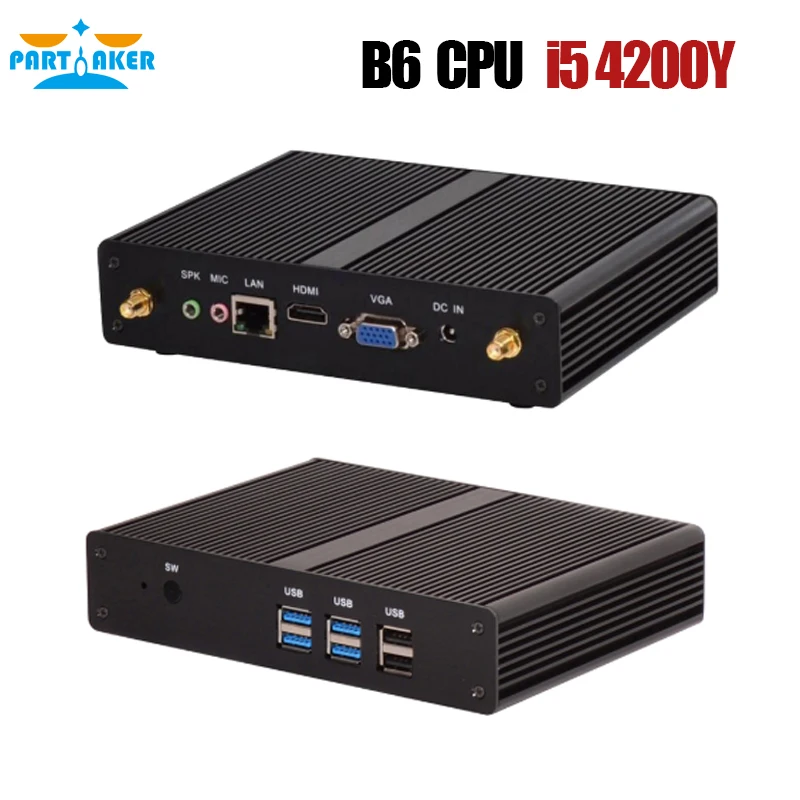 Безвентиляторный мини-ПК, Intel i3 7167U i5 4200Y Windows 10, системный блок, настольный ПК, Linux HTPC VGA HDMI Wi-Fi 6хusb