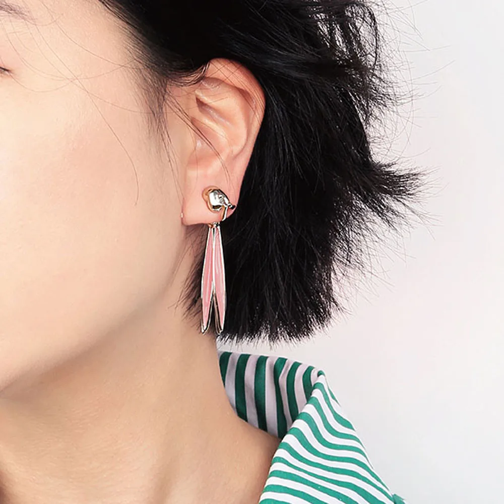 Милые длинные серьги с заячьими ушками, блестящие стразы, металлические серьги-подвески с розовой глазурью для женщин и девушек, модный аксессуар