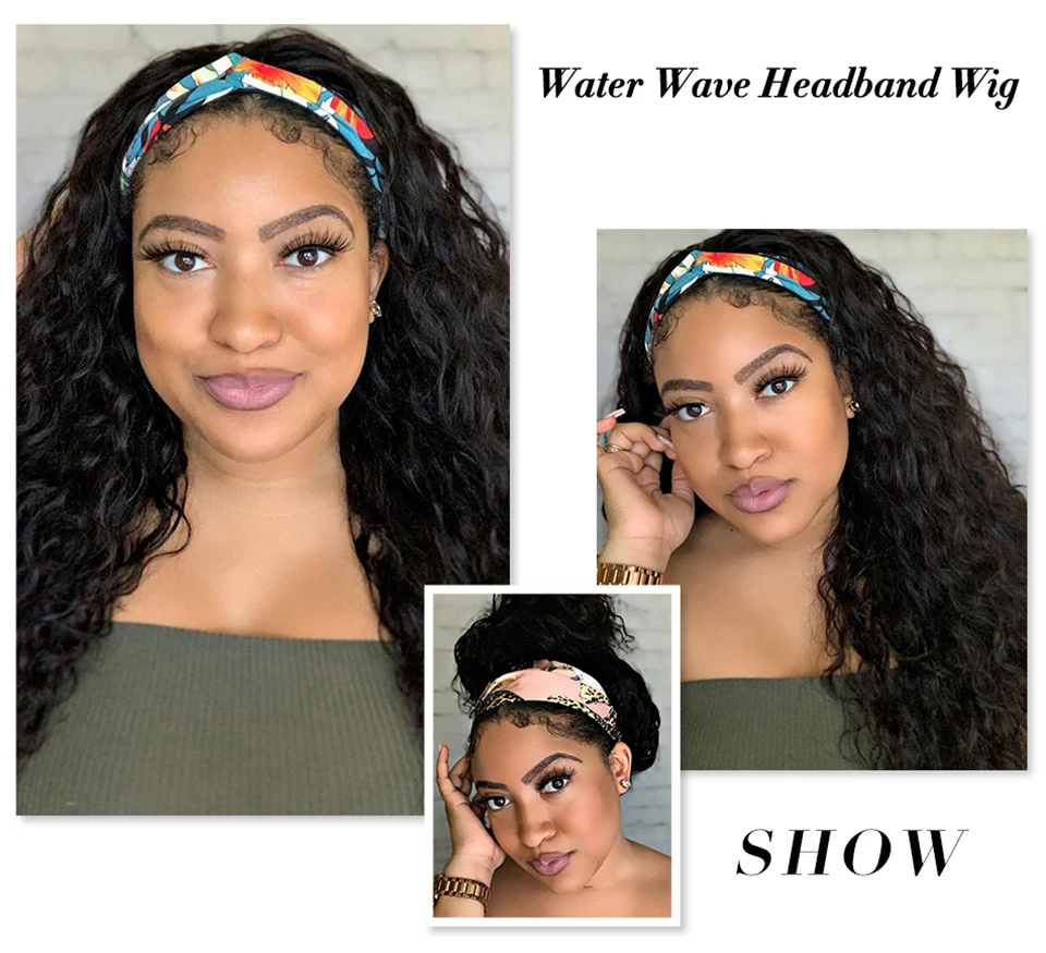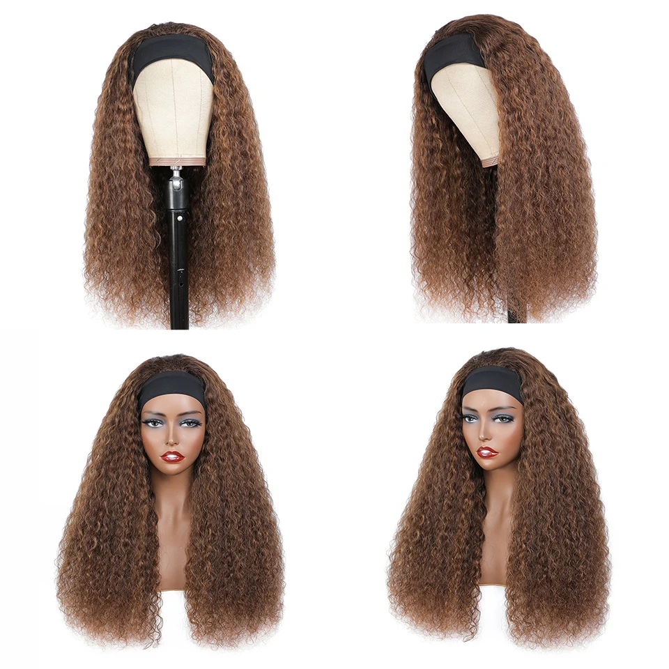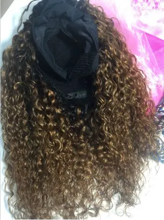 Бразильский Выделите воды вьющиеся парик с головной повязкой с эффектом деграде (переход от Blone синтетические парики из натуральных волос на кружевной Nicelight полная машина сделано Remy парик для Для женщин