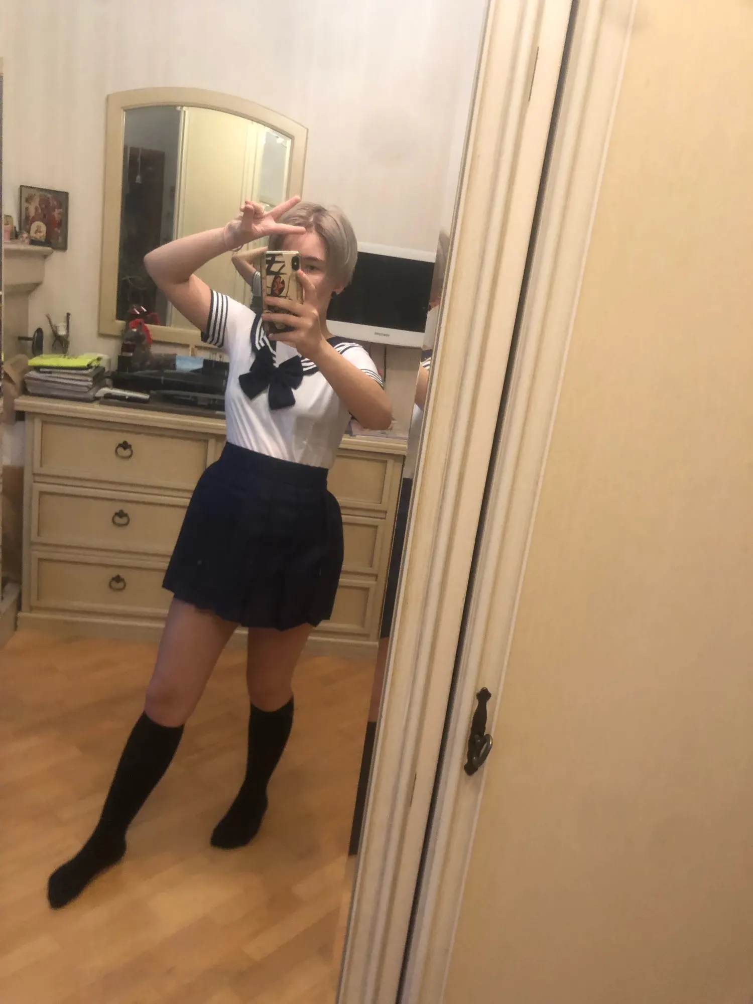 Восхитительная форма , для меня она обошлась в 300р ибо промокод и это еще больше делает ее восхитительной , единственный недочёт это то что юбка коротковата и слегка полупрозрачная если приложить к руке прям видно, но я надела свою юбку которая чуть длиннее и плотнее и вышло супер, верх отличный, бабочка на булавке ( брала размер s ибо он стоил дешевле остальных почему-то, хотя у меня м и мне идеально подошло ) вообщем агрессивно советую , прям бомба за свою стоимость я считаю, а если бы ещё на юбочке две белых полосочки было , это был бы отвал всего ;) *** та юбка что по короче , это та что пришла вместе с верхом, более длинная это уже моя, чулки тоже мои.