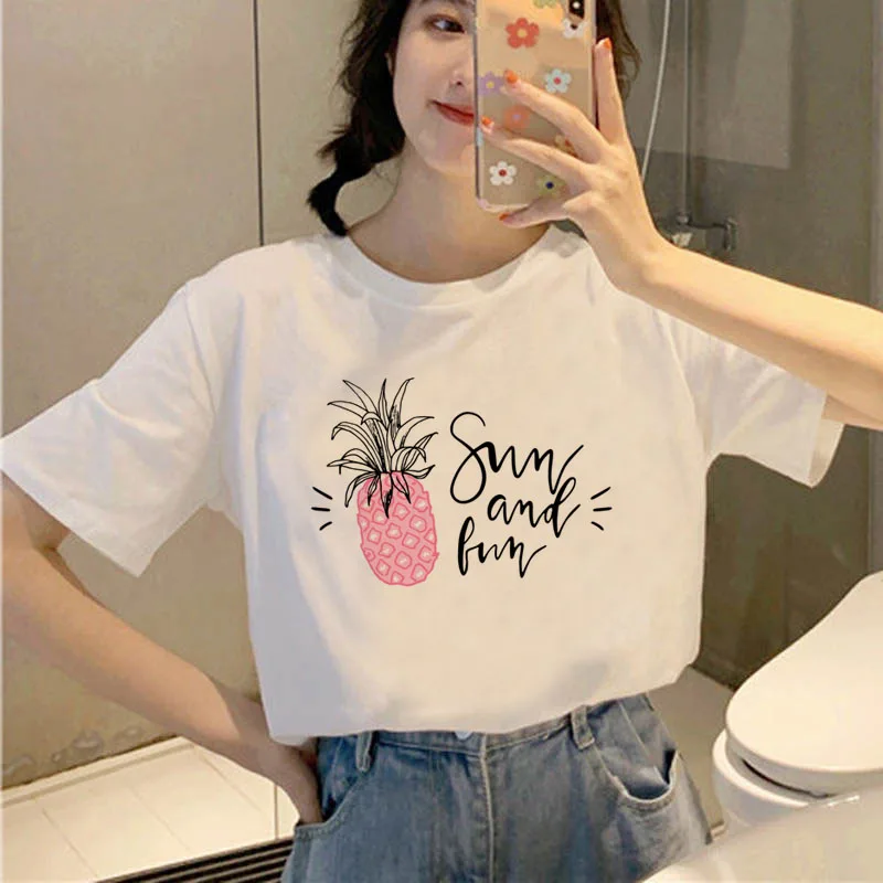 Женская футболка 2021, футболка с принтом ананаса, женский модный топ, футболки с графическим принтом, женские кавайные футболки, футболки