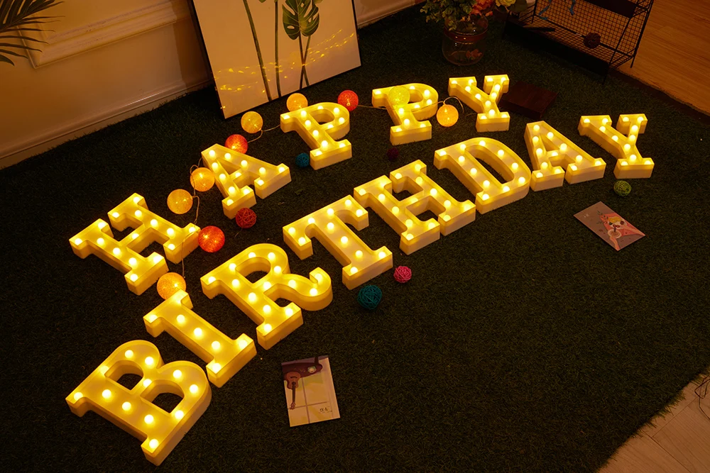 Светодиодный ночник с 26 буквами, 0-9 цифр, лампа с днем рождения, ...