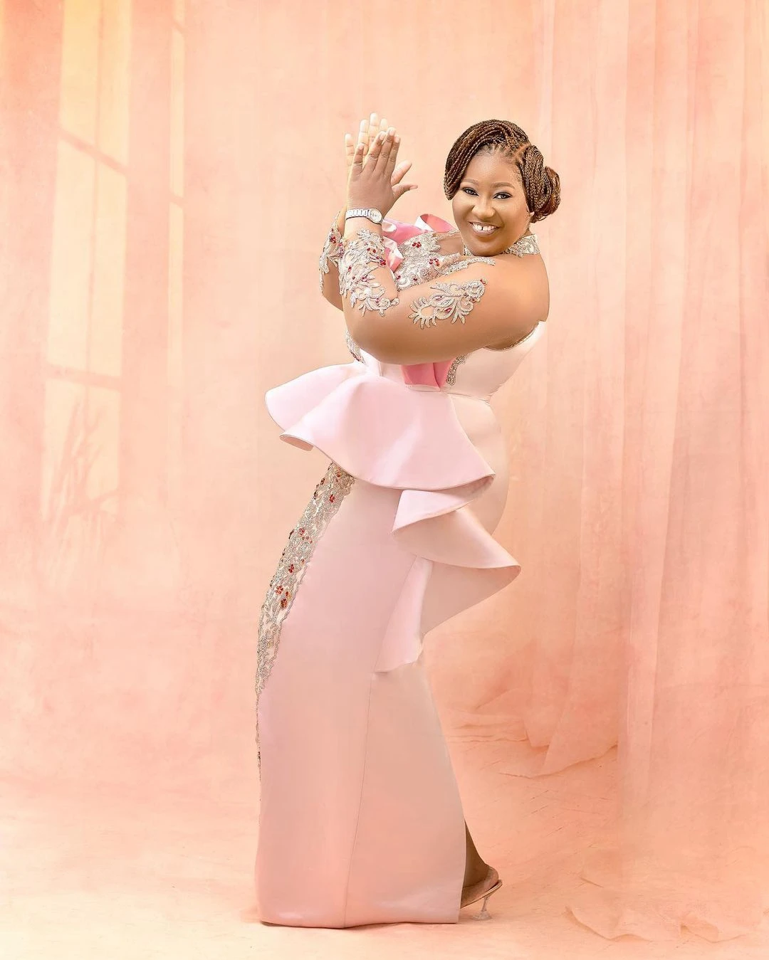 Женское вечернее платье с юбкой годе, Розовое Кружевное длинное пла...
