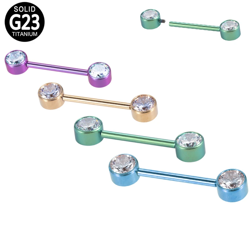 1 шт. ASTM F136 титановое смешанные цвета кольцо для сосков с фианитом 14 г кольцо для пирсинга языка штанги для пирсинга сосков оптовая продажа