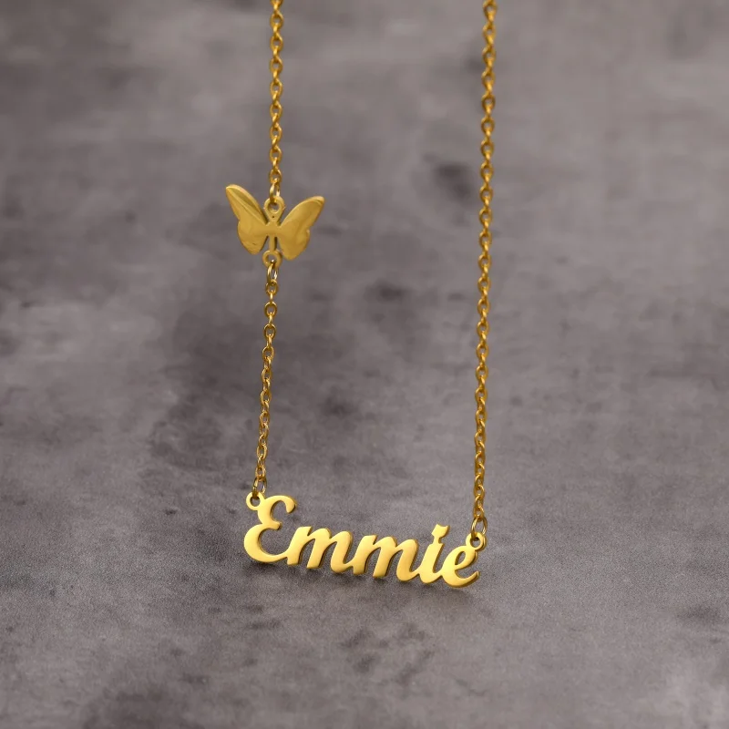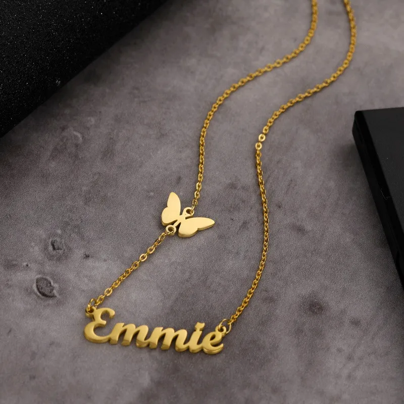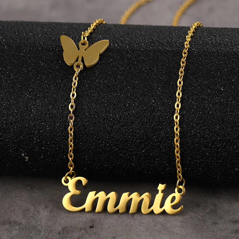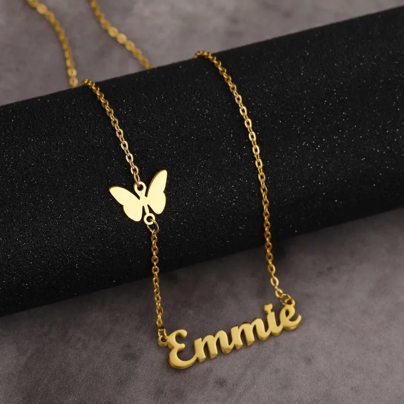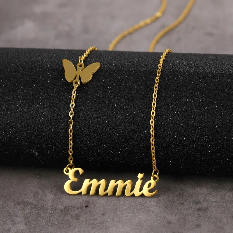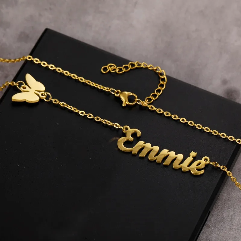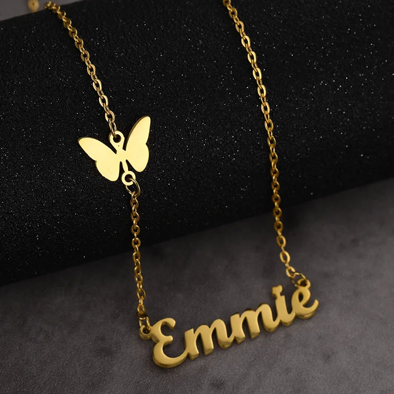 Индивидуальные модные золотые ожерелья из нержавеющей стали с именем для женщин и мужчин, индивидуальное ожерелье с подвеской-бабочкой, ювелирные изделия