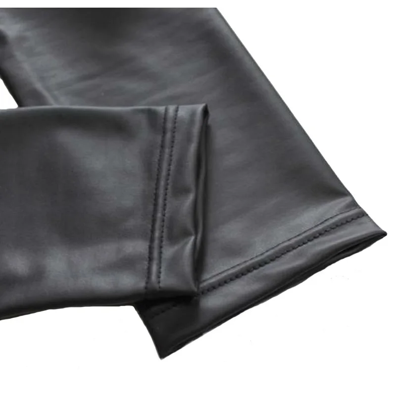 Леггинсы женские черные из искусственной кожи, до щиколотки, с высокой талией