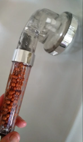 Доставка заняла чуть больше месяца. Насадка как на картинке. Когда наполняется водой - массивная по весу. Учтите, что она прямая, не загнута книзу. У меня держатель на стене, повесила, струя бьёт далеко вперёд. Ну это мое упущение. С насадкой всё отлично! Не знаю зачем там шарики. По ощущениям вода такая же как и раньше. Три режима как и обещали. Главное не раскручивайте (посмотреть что в животике). У меня до этой была подобная, раскрутила - режимы перестали переключаться. Лучше, не рискуйте.