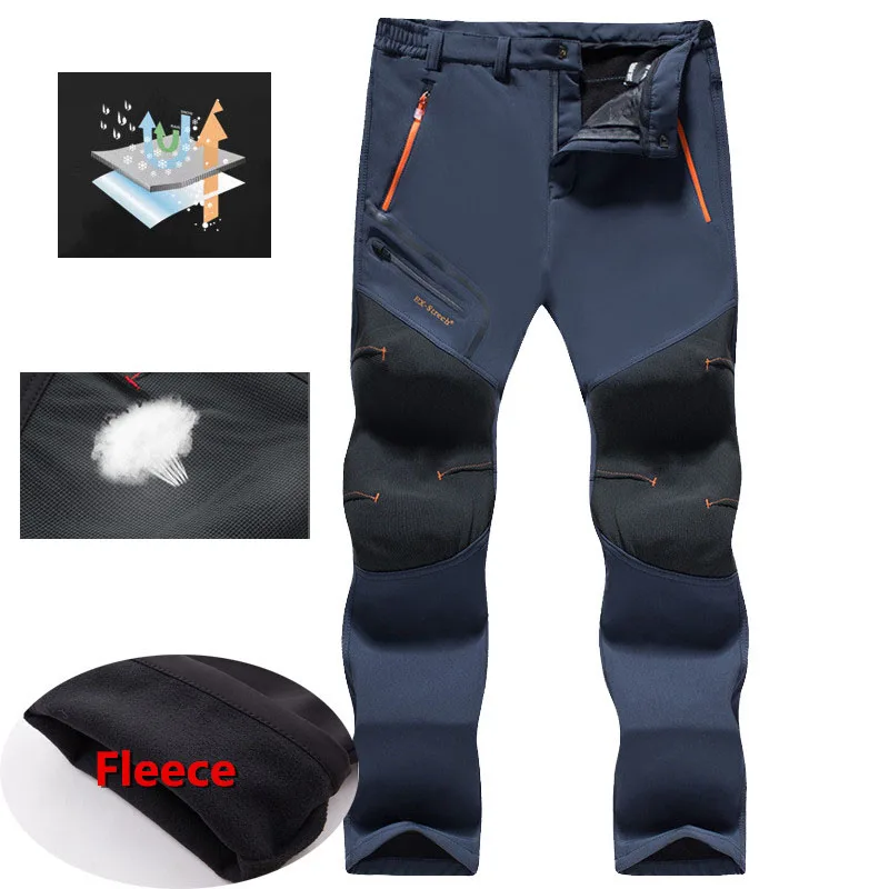 Мужские зимние повседневные эластичные брюки, флисовые военные брюки-карго, водонепроницаемые брюки с мягкой оболочкой, уличные рабочие толстые теплые спортивные брюки