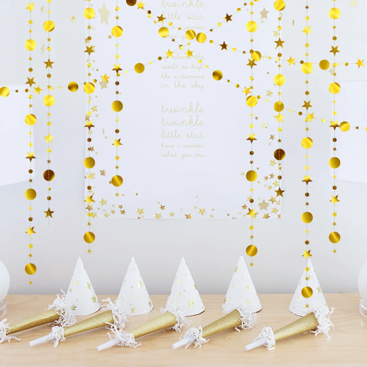 Золотые и серебряные звезды диски лента-гирлянда День рождения Свадьба детский день предложение площадка макет украшения