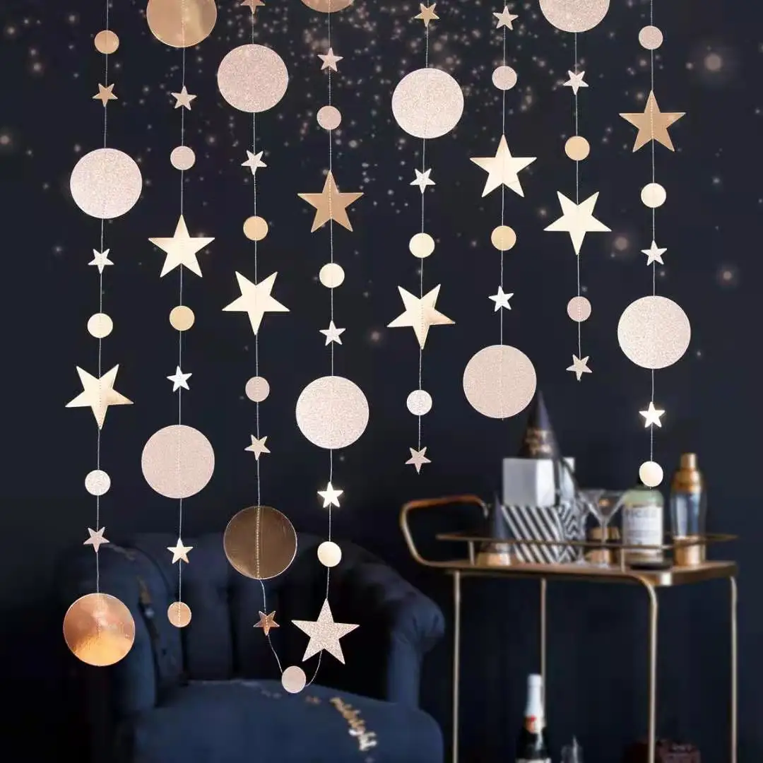 Свадебное украшение 4 м Золотая Звезда Круглая Бумажная гирлянда де...