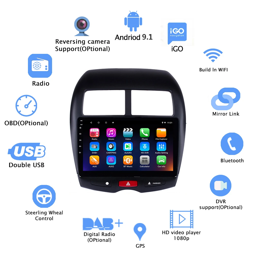 10,1 "Android 9,1 10 для Mitsubishi ASX 2010 2011 - 2017 автомобильное радио мультимедийный видеоплеер навигация GPS Carplay 2din 2 din