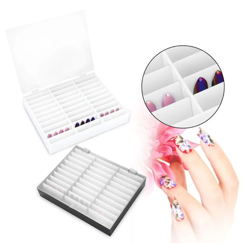 2. 33 отделения. Можно хранить много накладных ногтей, типсов, бусин для украшения ногтей и т. д.