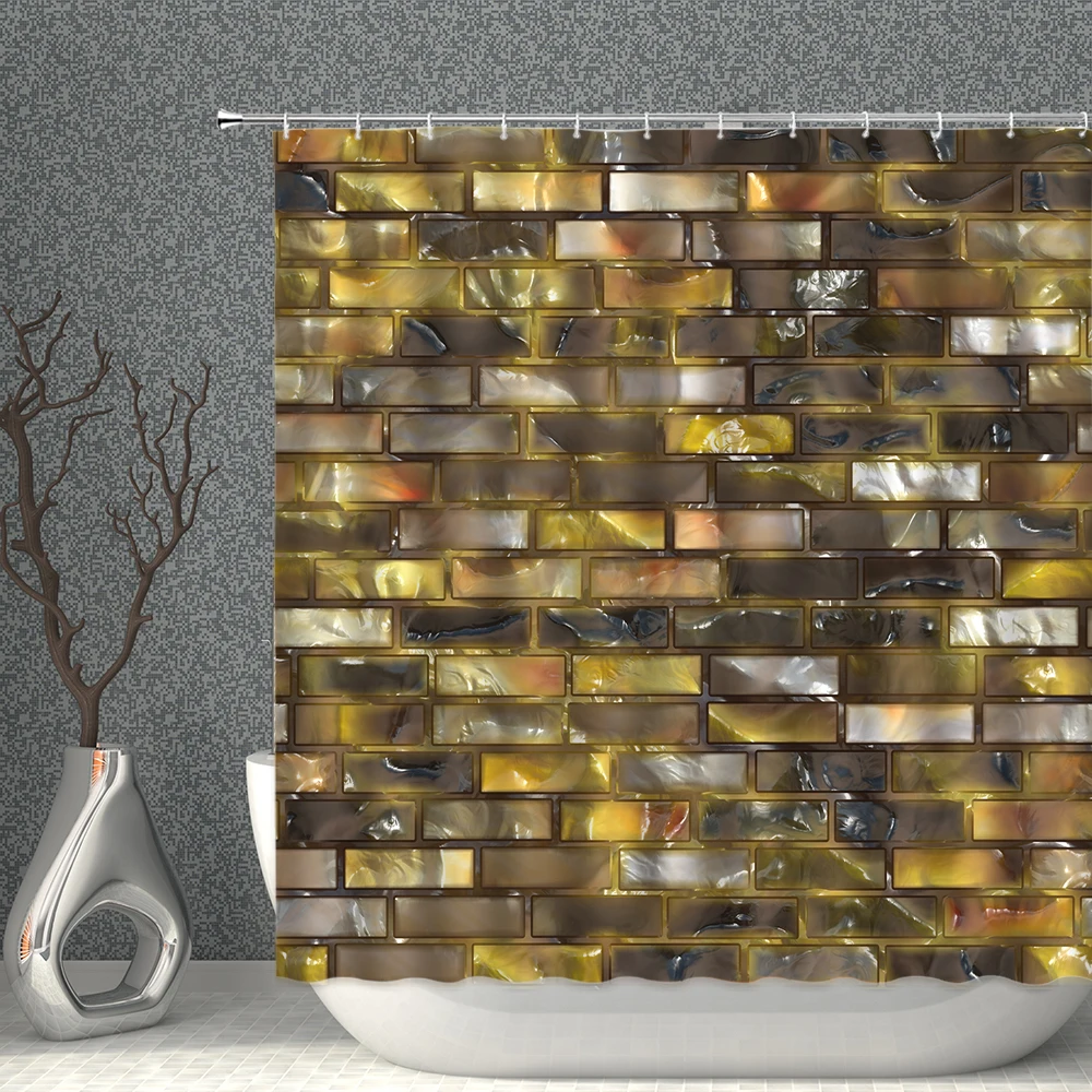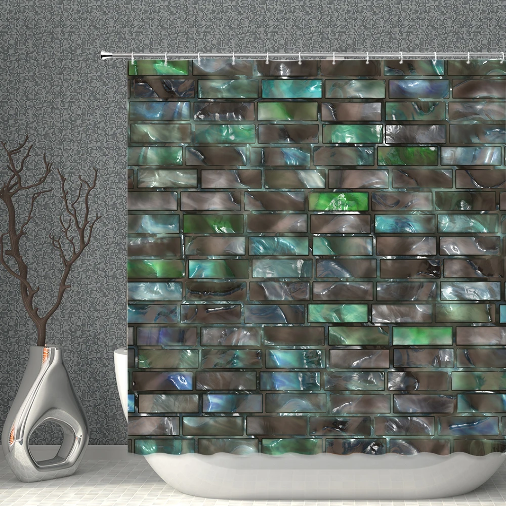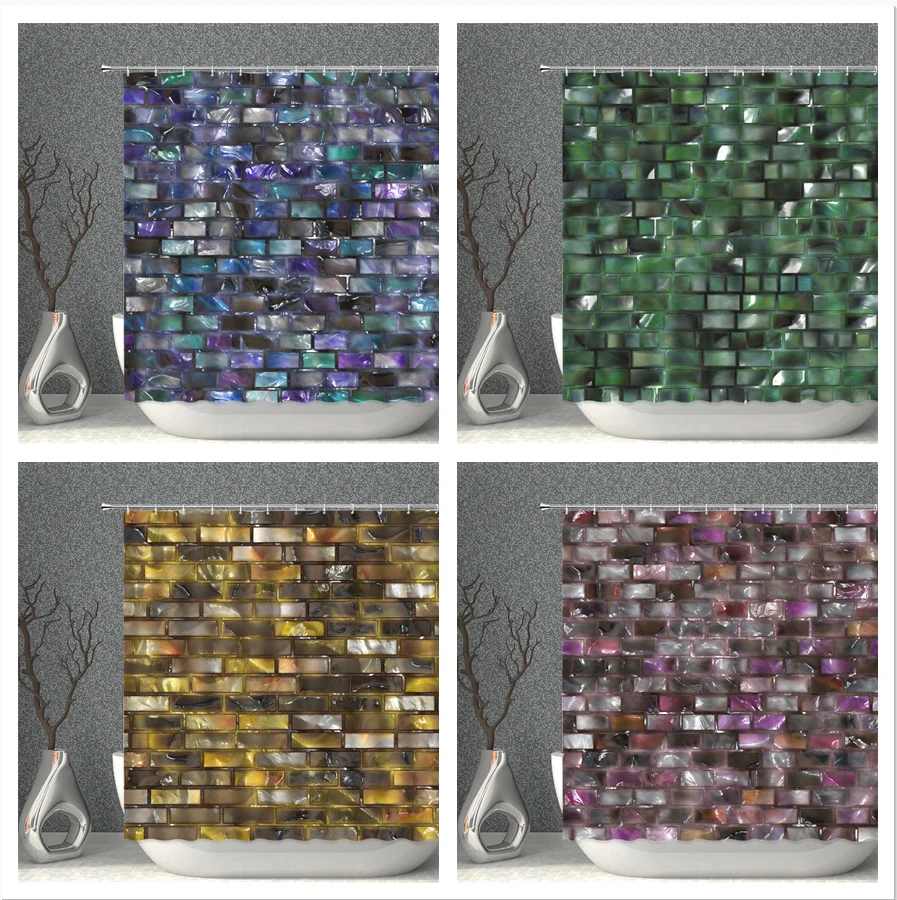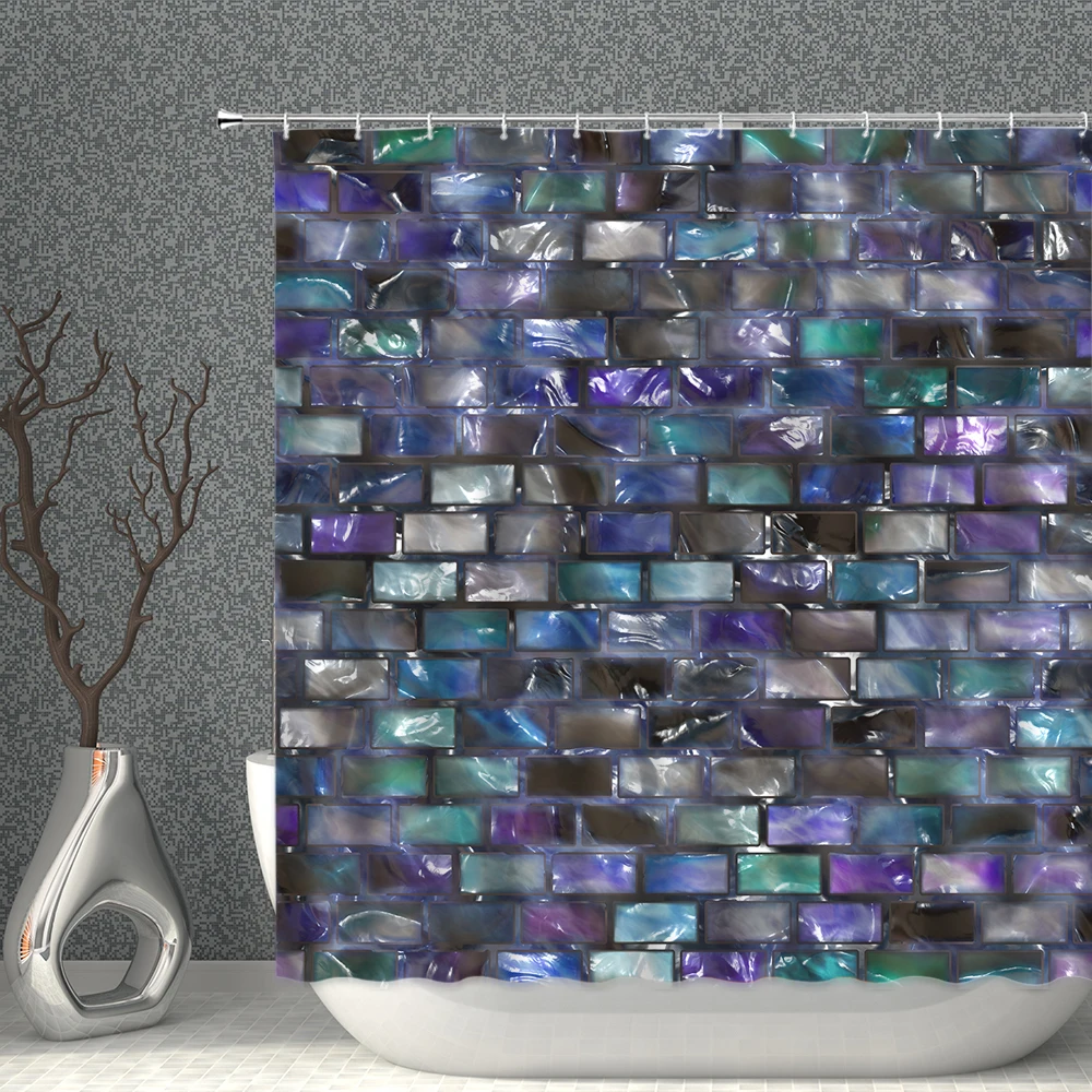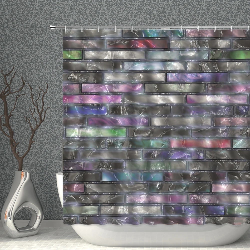 Комплект занавески для душа с мозаичным кирпичным узором, синяя, фиолетовая, зеленая, желтая, зернистая занавеска для ванной, водонепроницаемая ткань, экран для ванны