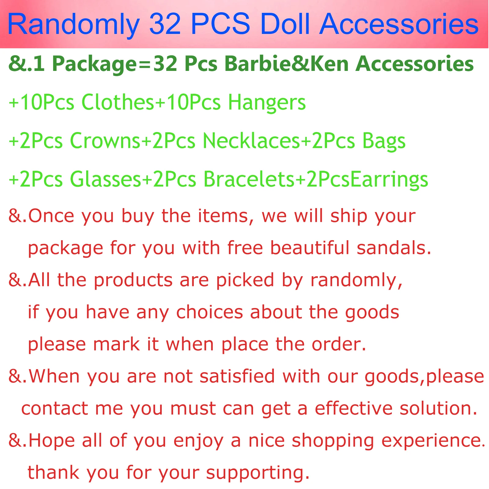 Аксессуары для кукол Барби 32 шт., бесплатная доставка, 10 вешалки,...