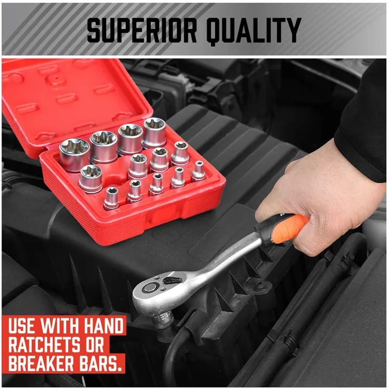 Crv Материал 14 шт./компл. E Torx Star гнездовой Набор бит 1/2 "3/8" 1/4 "Привод E4 - E24 ремонтный инструмент набор ручных инструментов