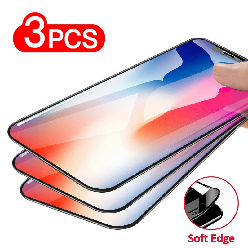 Закаленное стекло с закругленными краями для iPhone X, Xr, Xs, 11, 12 Pro Max, Защита экрана для iPhone 6, 6s, 7, 8 Plus, SE 2020, защитная пленка