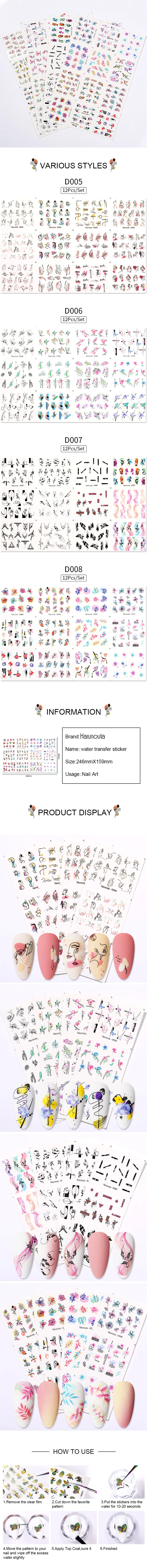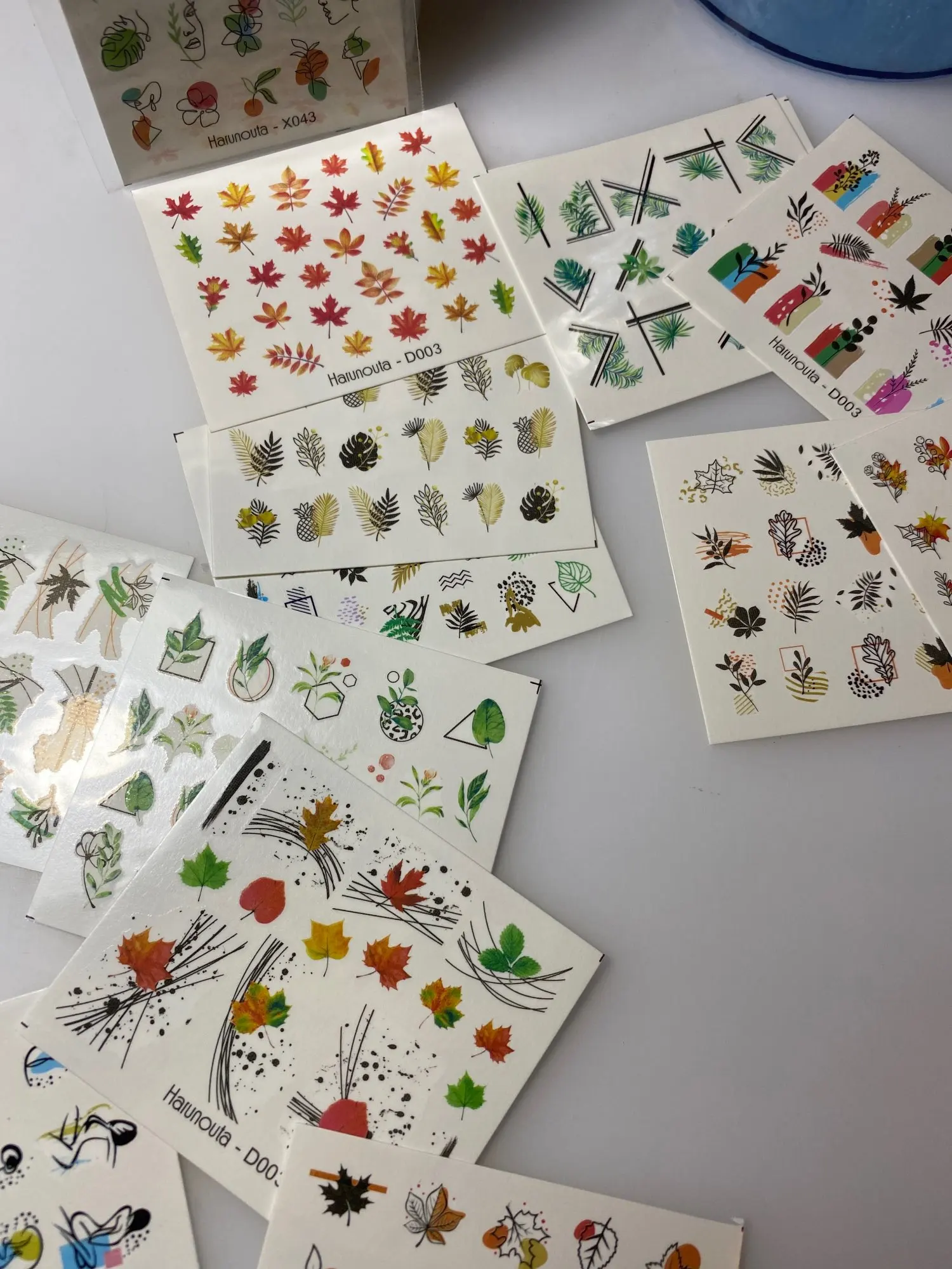 Переводные наклейки для ногтей Harunouta, 12, дизайнерские наклейки для ногтей, в русском стиле, с геометрическими узорами, цветочные листья, украшение для маникюра