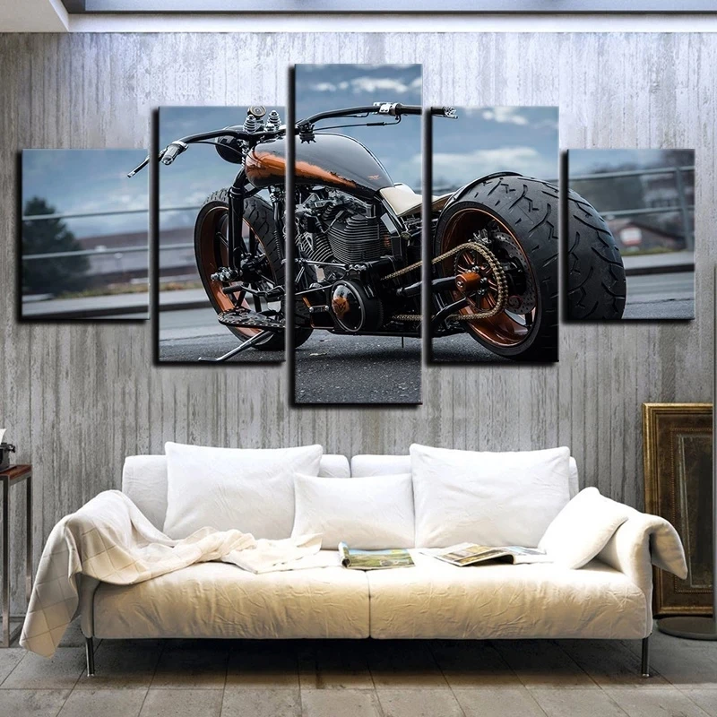 Картина на холсте, настенный постер, 5 шт., роскошные Ретро мотоциклетные картины, HD принты, домашний декор для гостиной, модульная рамка