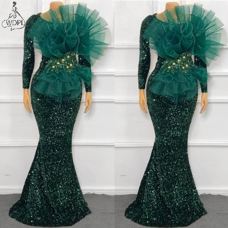 Изумрудно-зеленые блестящие вечерние платья с длинными рукавами в стиле русалки, женское платье в африканском стиле Aso Ebi