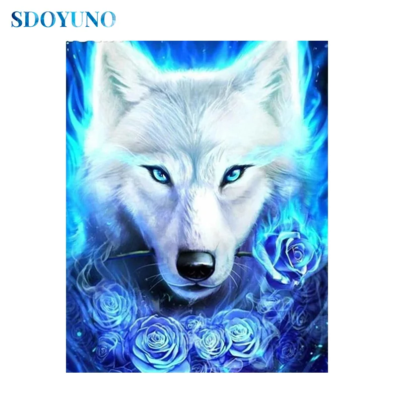 Алмазная живопись 5D SDOYUNO DZDP853, полноразмернаякруглая вышивка с животными, картины с волчьим узором, домашний декор