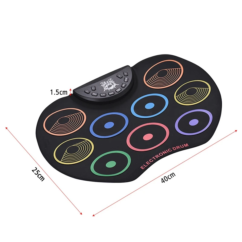 Портативная рулонная ударная установка набор электронных ударных, 9 силиконовых ударных колодок, питание от USB, с барабанные палочки, ножные педали, для детей