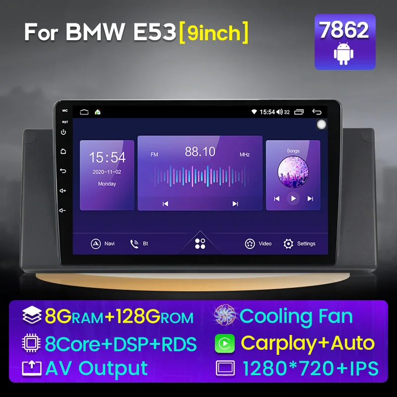 > 9-дюймовый IPS-экран + охлаждающий вентилятор(Вспомогательное устройство для отведения тепла процессора)+ Разрешение 1280*720 + Восьмиядерный процессор + DDR3 4 Гб (6 Гб опционально) флэш-память + 64 ГБ (128 Гб опционально) + беспроводной Carplay + беспроводной Android Auto + Встроенный DSP + RDS + встроенный Wifi + 4G LTE + GPS-навигация + управление рулевым колесом + Bluetooth + Встроенный микрофон + поддержка полного AV-выхода + Поддержка разделенного экрана + Поддержка функции USB ADAS DVR + Функция Europe DAB + 1080P видео воспроизведение + Мониторинг давления в шинах система