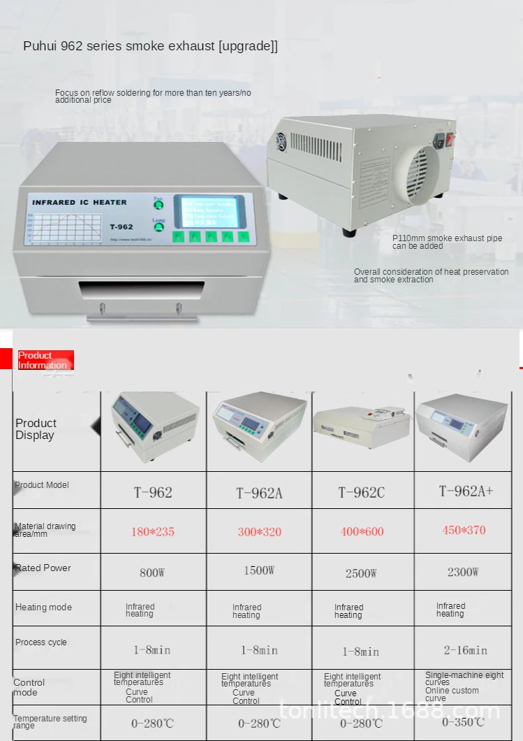 Прибор для пайки PUHUI T-962 T962 с инфракрасным нагревателем, 800 ...