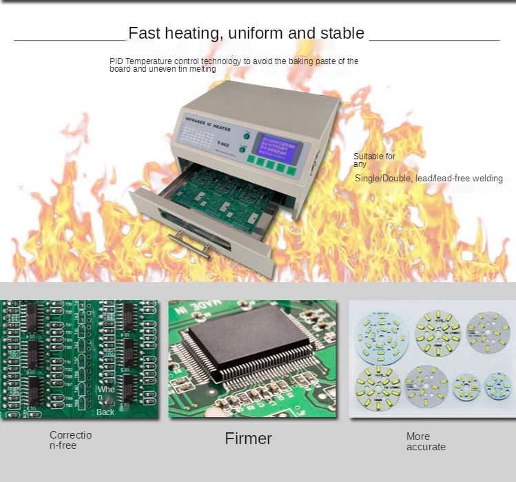 Настольная духовка с инфракрасным нагревателем IC 110 В220 В 800 Вт, паяльная машина 800 Вт 180x235 мм T962 для BGA SMD SMT, переделка