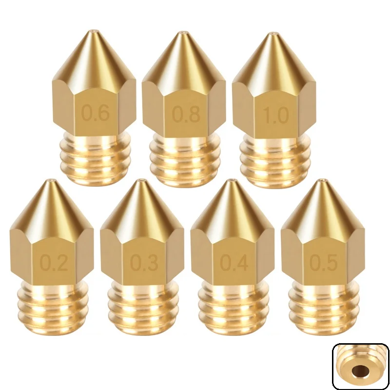 Сопла MK8 MEGA для 3D принтеров, насадки 0,2, 0,3, 0,4, 0,5, 0,6, 0,8 мм, латунная Резьба M6, 1,0 мм, Филамент для 3D-принтеров, Hotend CR10 Ender3
