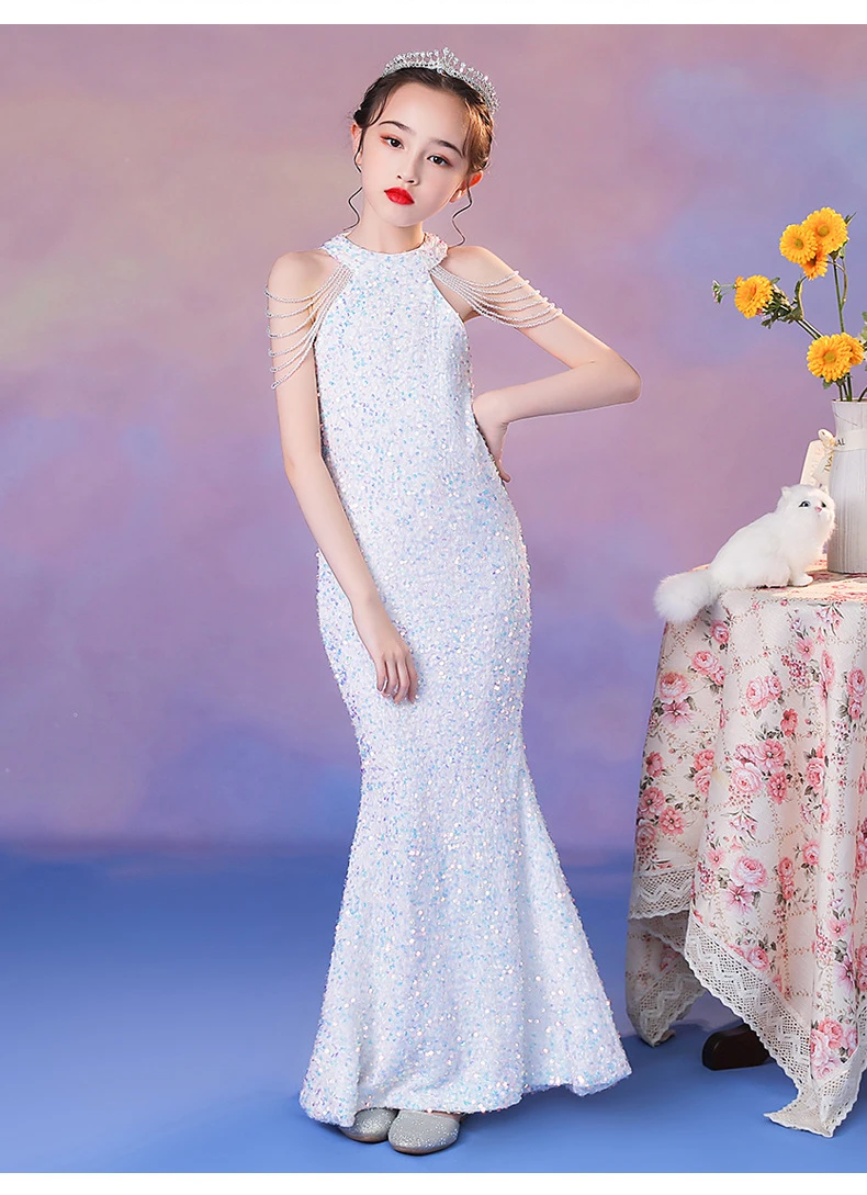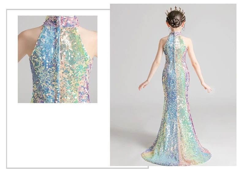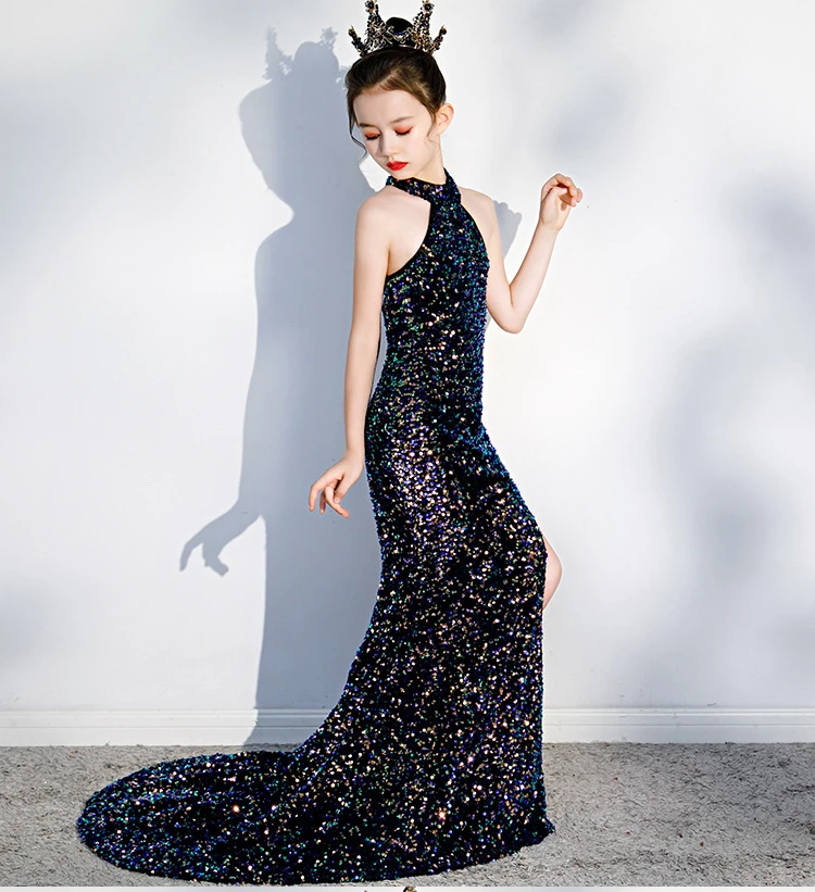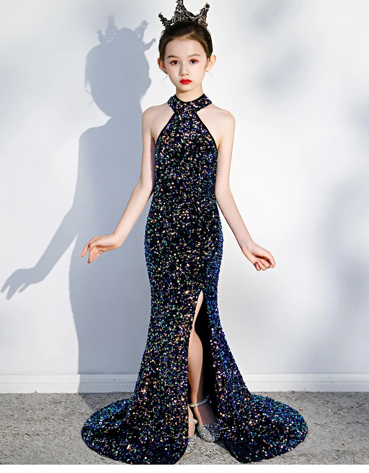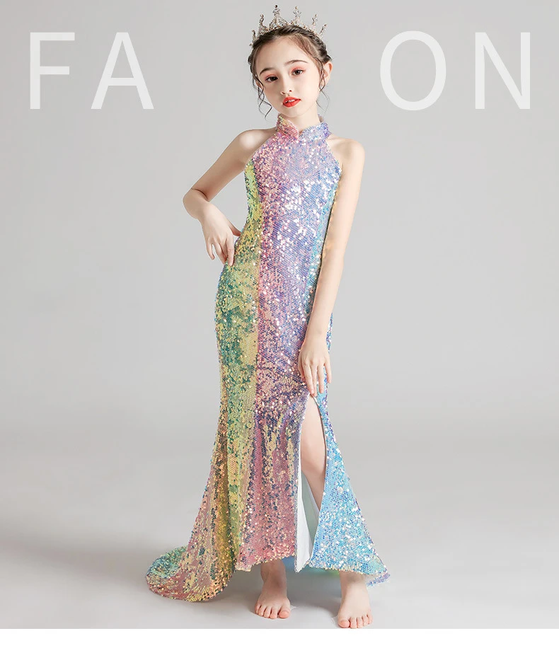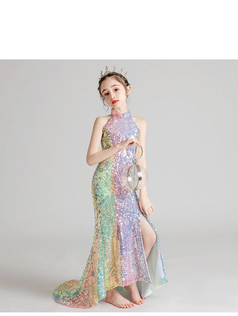 Вечернее платье для девочек; Детское элегантное платье для дня рождения; Пикантное многоцветное платье с блестками для выпускного вечера