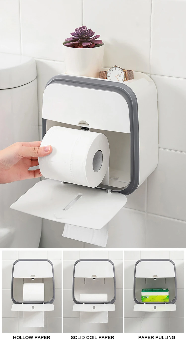 Водонепроницаемый контейнер для туалетной бумаги, двухслойный держатель для рулона бумаги с настенным креплением, ящик для хранения туалетной бумаги, аксессуары для ванной комнаты