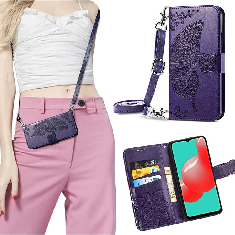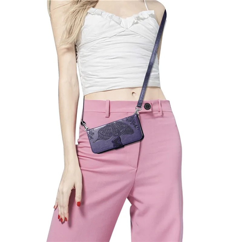 Compatible Model 23D Butterfly strap cord wallet case for Xiaomi mi 10 lite 10t Pro