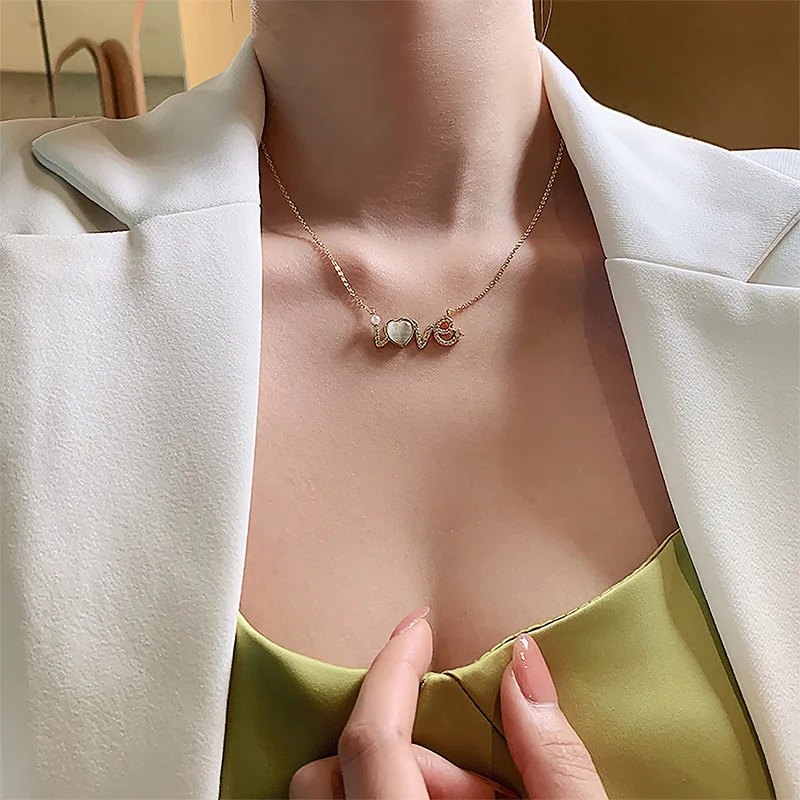 Ожерелье для женщин; Модная обувь с украшением в виде кристаллов ожерелье подвеска в форме букв "Love" с геометрическим рисунком цепочка с кулоном, ювелирные изделия, аксессуары, оптовая продажа