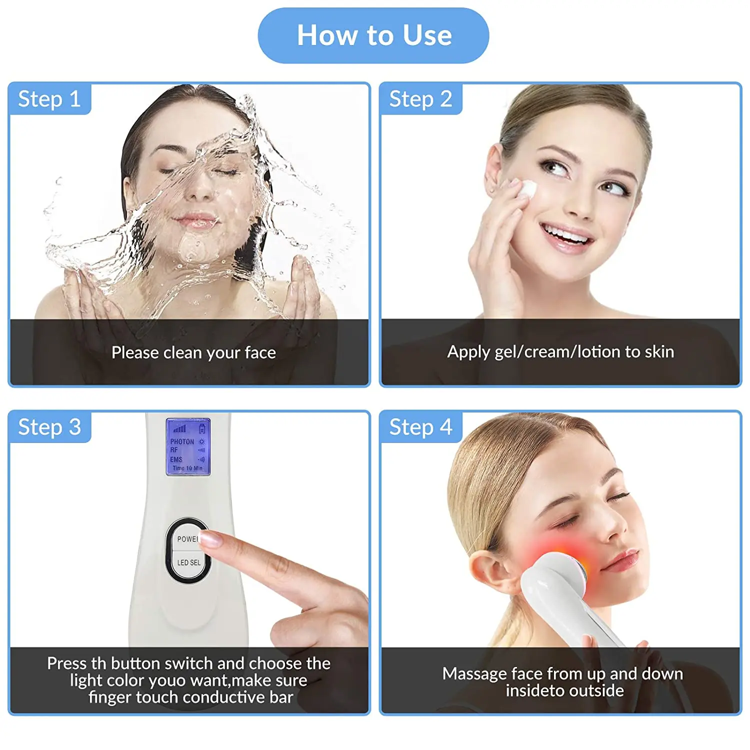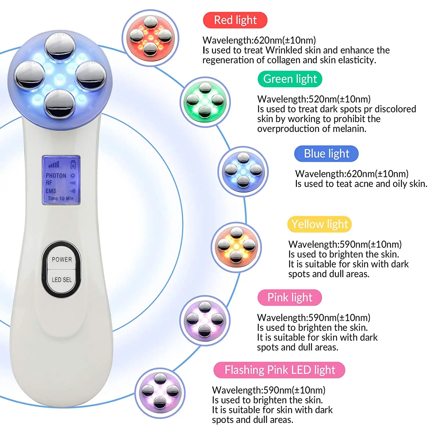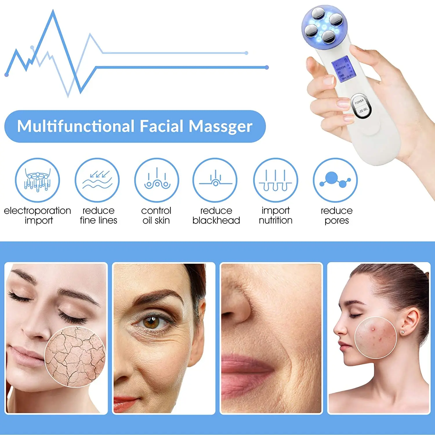 Фотонный массажер для лица, 5 в 1, радиочастотный, светодиодный, ом...