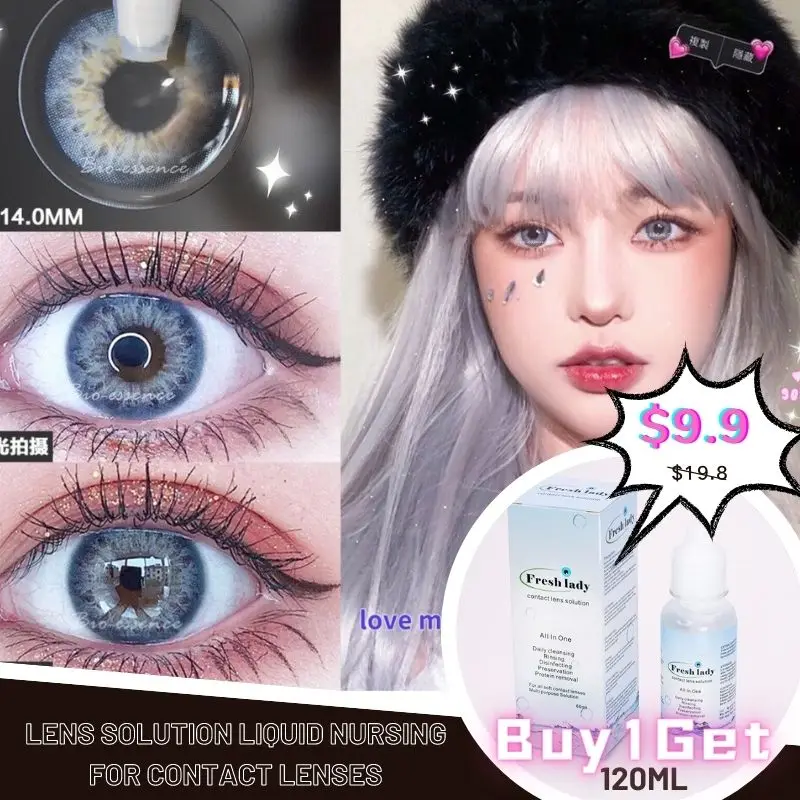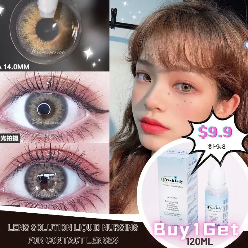 Биоэссенция 2 шт./пары цветные контактные линзы для глаз купить 1 пару контактных линз получить 1 раствор для линз жидкость для ухода 120 мл