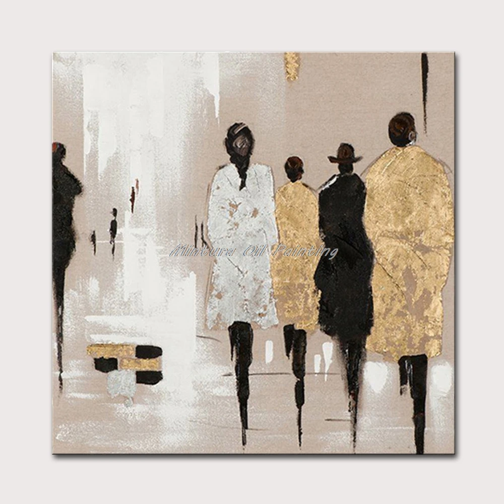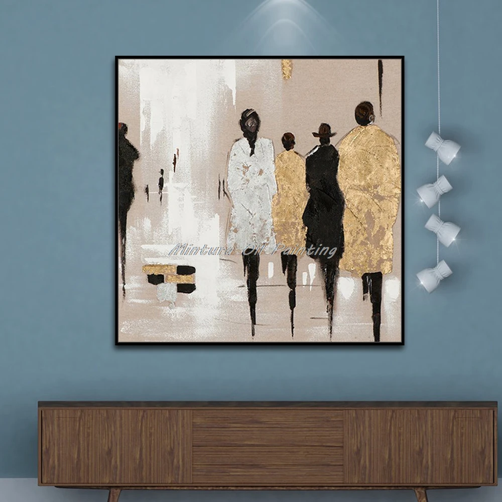 Настенная картина Mintura для гостиной, картины маслом на холсте, ручная роспись, абстрактная картина с пешеходами, домашний декор, картина без рамки