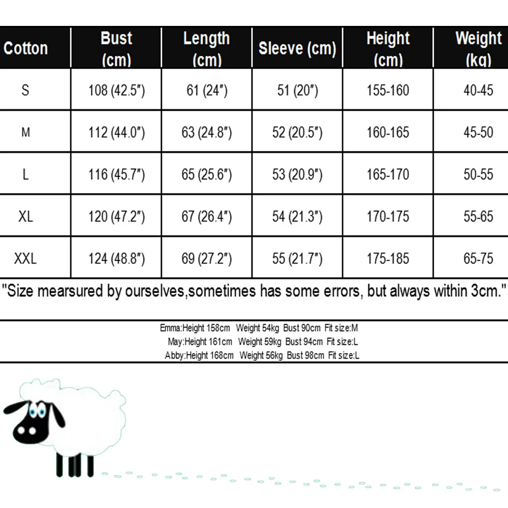 Размер: S,M, L,XL,XXL S: Длина 64 см, обхват груди 102 см, рукав 58 см,Высота 150-160 см