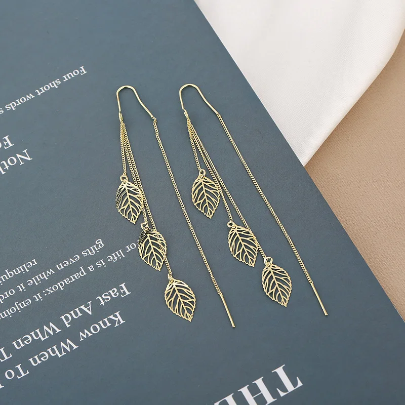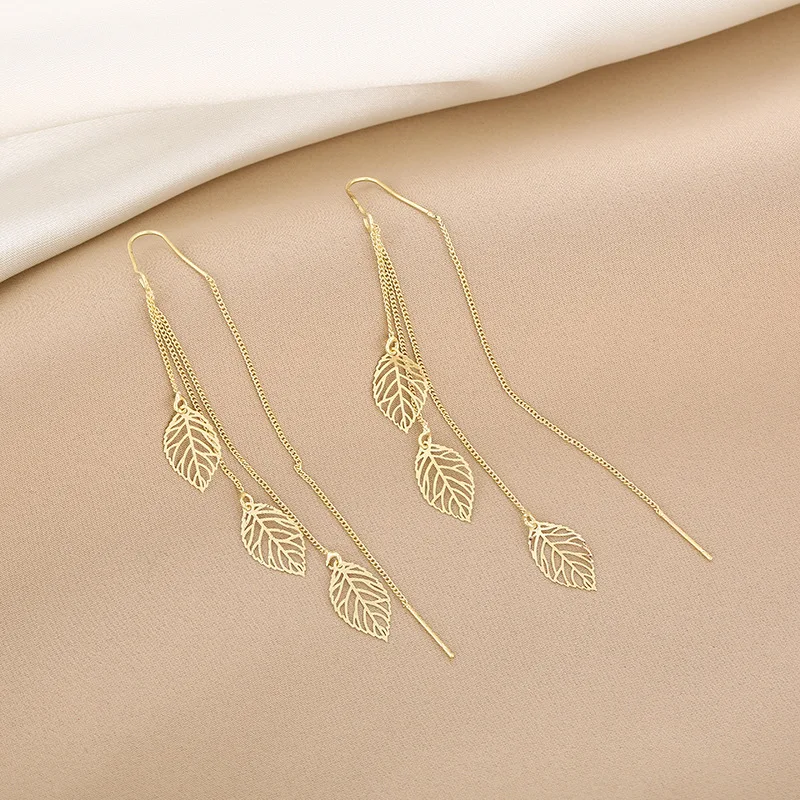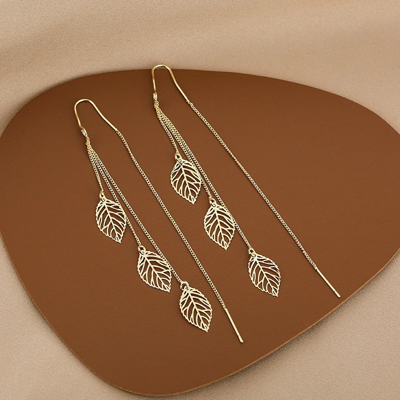 Женские длинные серьги-кисточки LOVOACC, висячие серьги золотого цвета с металлическими листьями, свадебные украшения