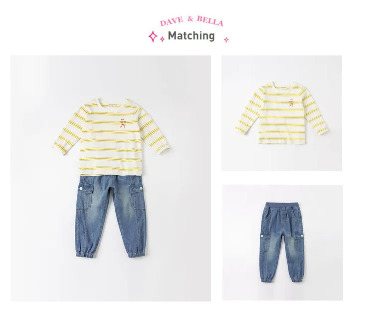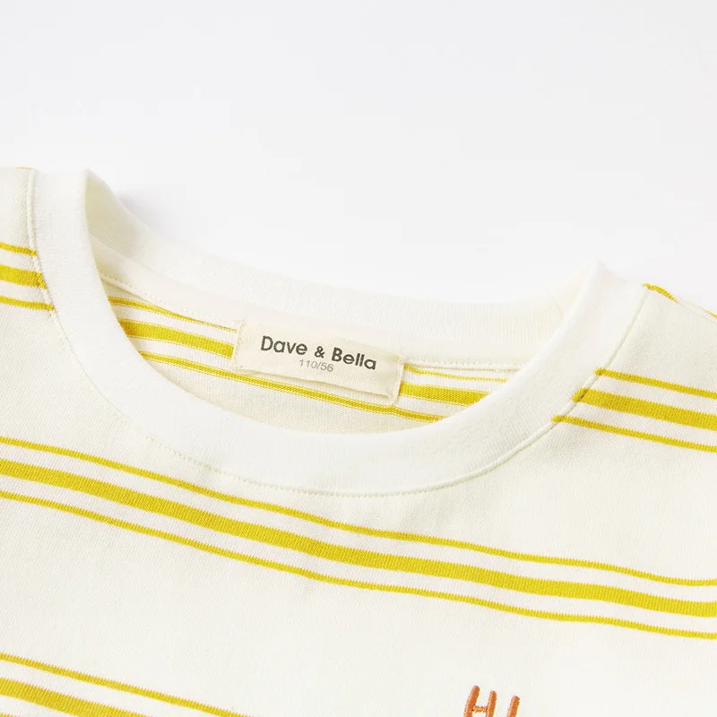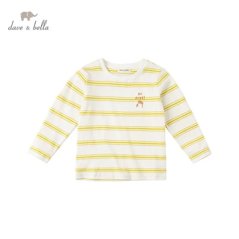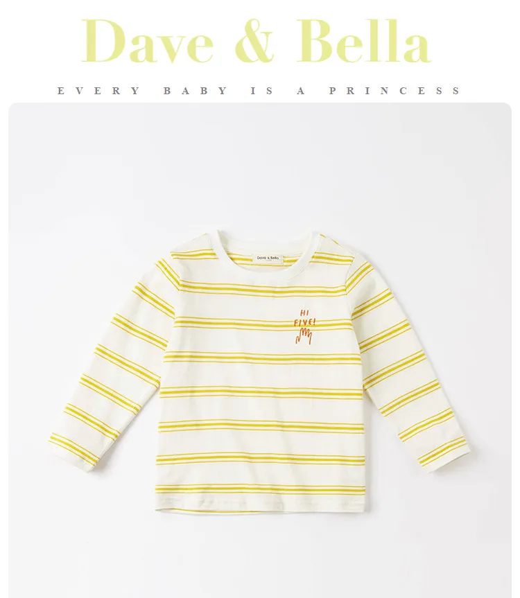 DKX17184-2 нижнее белье в стиле бренда dave bellaкомплект весенней От 5 до 13 лет Детская одежда для мальчиков; Детская модная футболка в полоску с буквенным принтом, футболка с коротким рукавом на мальчиков, высокое качество, модные футболки для девочек